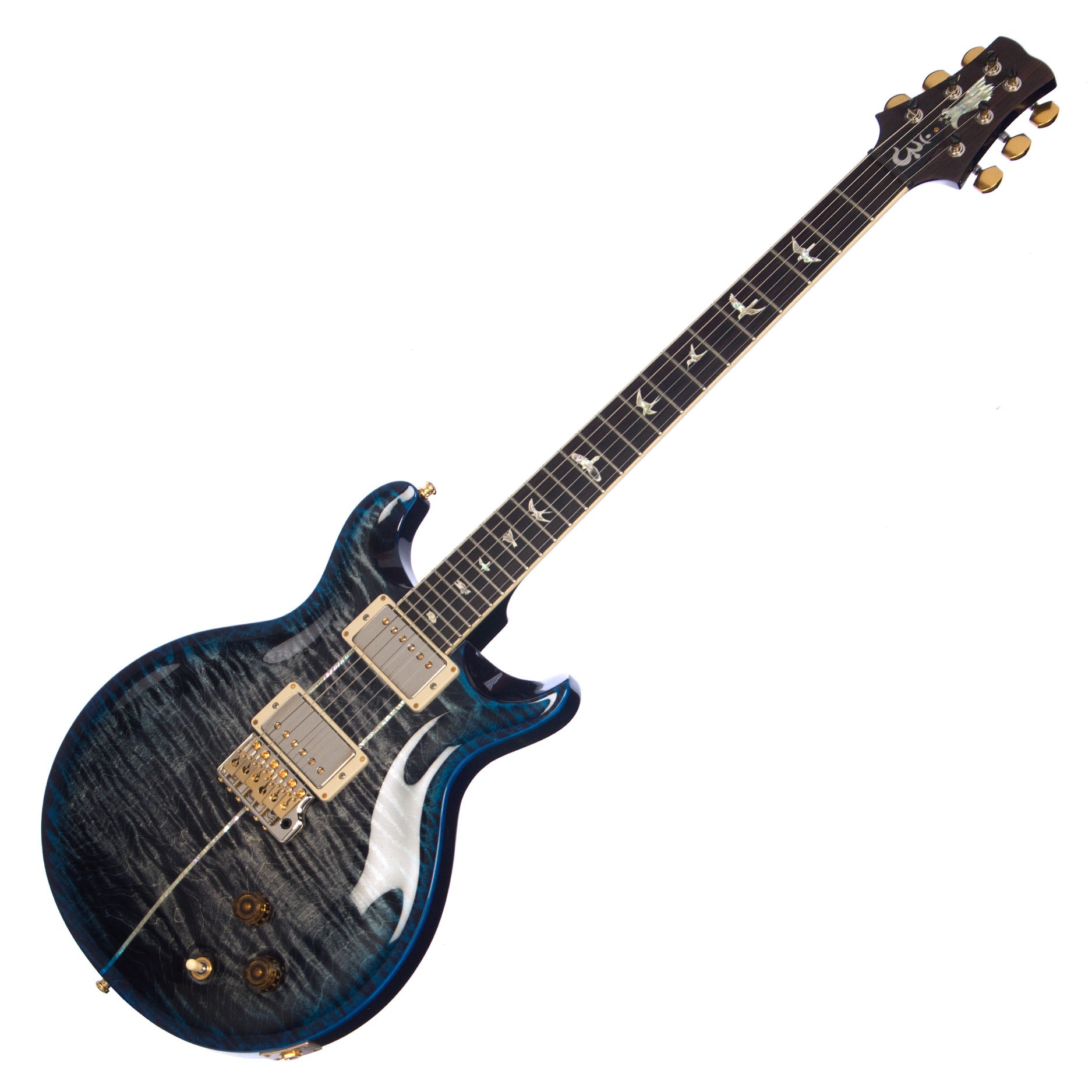 Used! Just in on trade. This beautiful Santana Retro is finished in Charcoal Blue Burst over a stunning, Flame Maple 10-top and it also includes the elegant Bird inlays. PRS Guitars are coveted by collectors and aficionados of fine quality, boutique instruments, but these guitars walk the walk as well as they talk the talk, and are played by international touring artists, gigging musicians, and aspiring players alike. The Santana Retro features PRS’s patented Gen III tremolo system and a pair of PRS Santana pickups with volume and tone controls, connected to a 3-way Pickup Selector. This particular instrument also has Hybrid Hardware and other features exclusive to the Santana models.