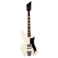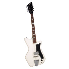 The Airline Jetsons Jr. White is a stripped-down rock and roll machine inspired by vintage 60's Airline/Valco electric guitars. With upgraded features and modern technology, including an adjustable bridge, truss rod, and Valco VVDC humbucker pickup, this guitar offers a consistent, playable experience ideal for contemporary guitarists. Its affordable price and DIY vibe make it the perfect choice for punk rock enthusiasts.