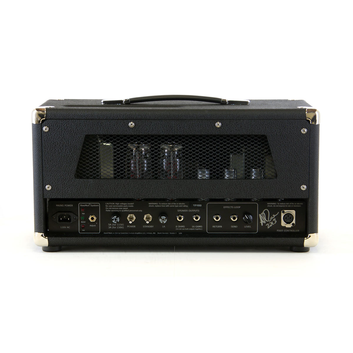 This 75 watt, KT88 powered amp is actually a significantly updated version of the original Tucana model and it is now infinitely more versatile thanks to some additional features and controls. The 3-channel Tucana 3 head has a separate Input Gain control for the Overdrive side as well as the Clean side, so anything from the purest, sparkling fat clean headroom to the ultimate heavy high gain overdrive and distortion can be achieved with ease. The Clean (A) channel also has its own, fully independent EQ section and Master Volume control. Each of the two Overdrive Channels (B & C) has its own Gain and Master Volume controls as well as independent Lead Master Volume (foot-switchable) and Global Presence. The newly revised 5 button footswitch is programmable and comes with the amp. As well as the traditional channel switching and lead boost functions, the new footswitch can be programmed to engage the FX loop on only certain channels, or globally. The Tucana 3 is a ”Swiss Army knife” amp designed for players who need access to many tones in one functional and convenient package. If you play sessions or have a Cover Band- the Tucana 3 is a perfect choice. Of course the incredible versatility and quality of tone are great for original music as well.