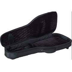 Ingenious design keeps the outside smooth and free from extraneous dangling straps and handles. Back Pack straps zip neatly out of side when not in use. High quality shoulder strap and handle also tuck away when not in use. The case is hard on the outside and soft on the inside. Plenty of storage for extras like pedals, accessories, books, etc... as well.