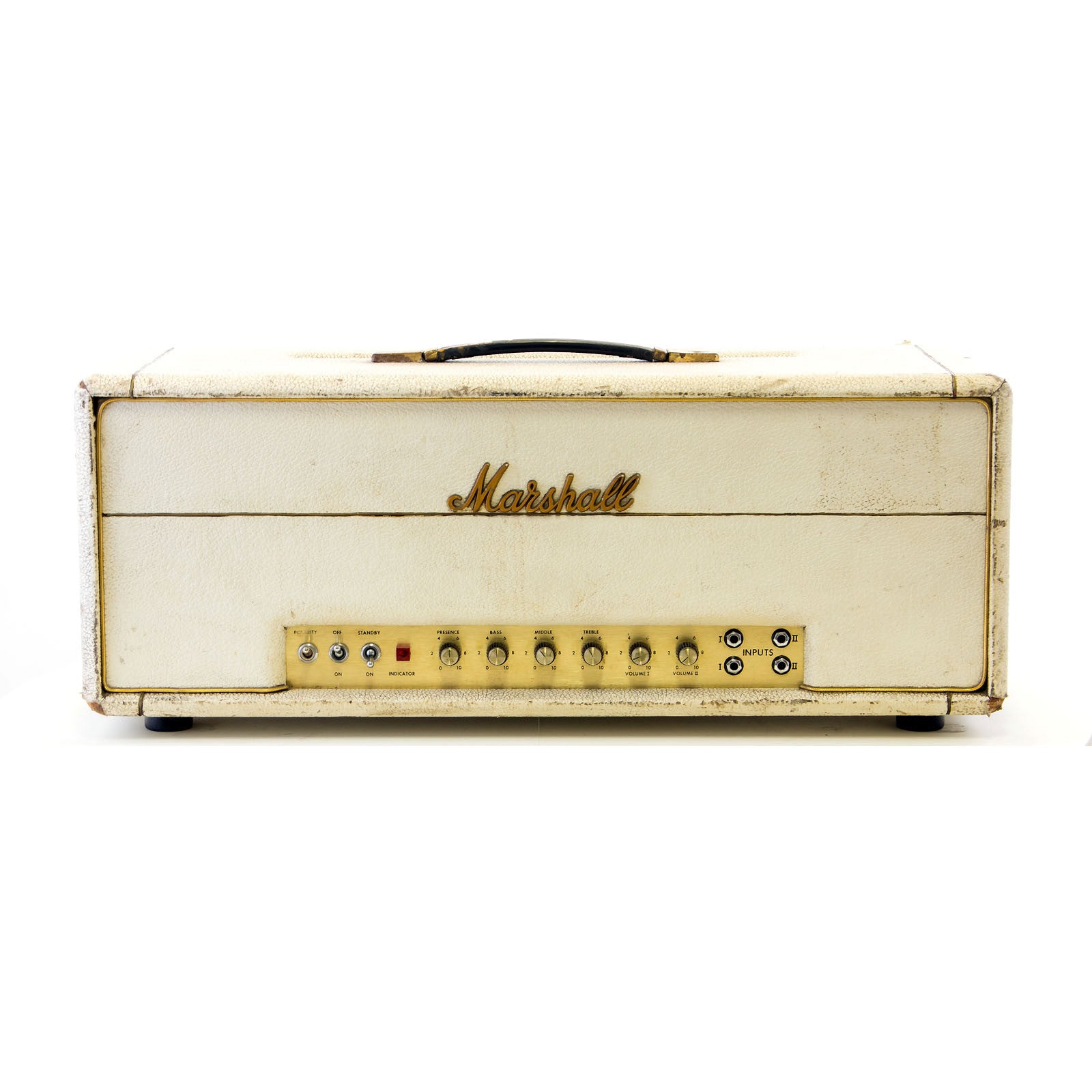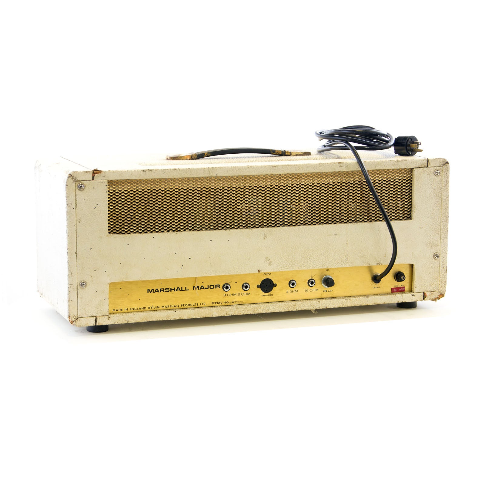 What you are looking at here is a vintage Marshall Major from 1970. It is covered in original, custom color white tolex. This amp is Loud! 200 watts of pure tube amplifier tone is what you get here. This amp is designed for massive, rich, blooming, power and headroom. It is NOT designed to be pushed to its limits like a 50 watt Plexi or even a 100 watt Marshall Superlead. This thing is 200 watts. There are 700 volts going to the screen grids and plates. It's designed for normal use, not to be dimed or maxed out. If you push it then be prepared to hit up the ATM for tube money and your amp tech for new fuses.